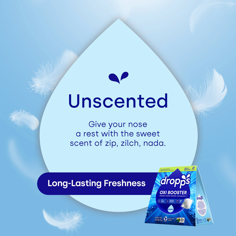 Boost your stain and odor fighting power with Dropps Oxi Booster Pods, a color-safe alternative to traditional bleach. Each micro-bubbling, oxygen-powered pod penetrates deep to lift stains and brighten fabrics. The cutting-edge combo of potent enzymes, surfactants, and oxygen-based technology power cleans your toughest messes for whiter, brighter fabrics. Now with 10x more cleaning power than a previous formula.