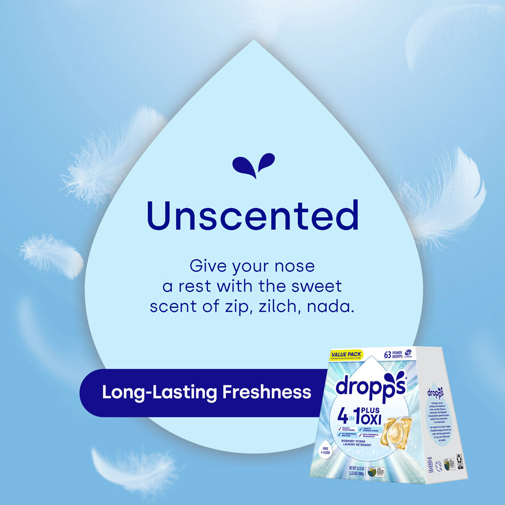Fight stubborn odors and stains while whitening and brightening fabrics with Dropps 4-in-1 Plus Oxi Biobased Power Laundry Detergent. This master multitasker is packed with advanced odor defense, stain-fighting enzymes, and oxi so you can do it all. Plus FiberShield Technology is designed to help fabrics look new for longer. Its 84% USDA Certified Biobased formula provides a complete clean with long-lasting freshness without added fragrance or dyes. Just toss one pod into the washer drum before you load your laundry. This powerful pod will take care of the rest.